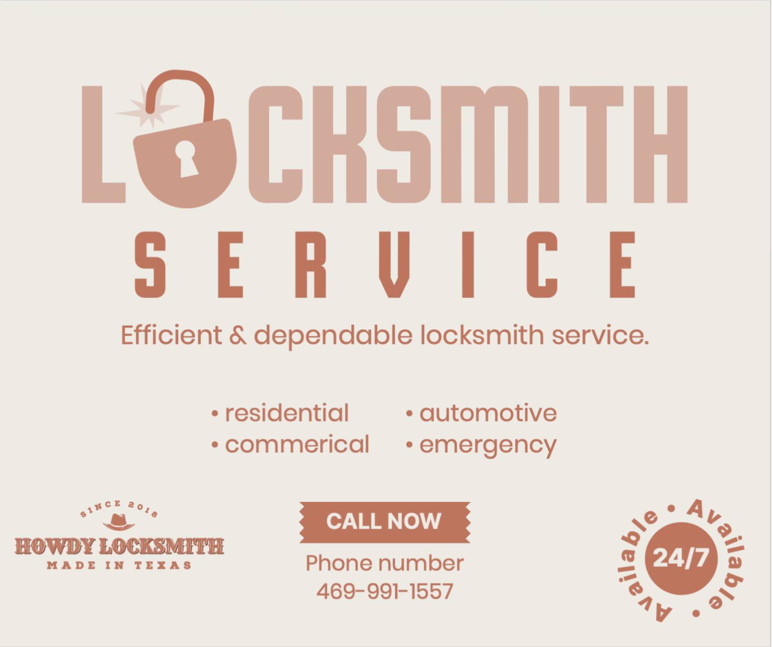 Howdy Locksmith, your local Texas locksmith bringing honesty, reliability, and good old-fashioned service to every call.